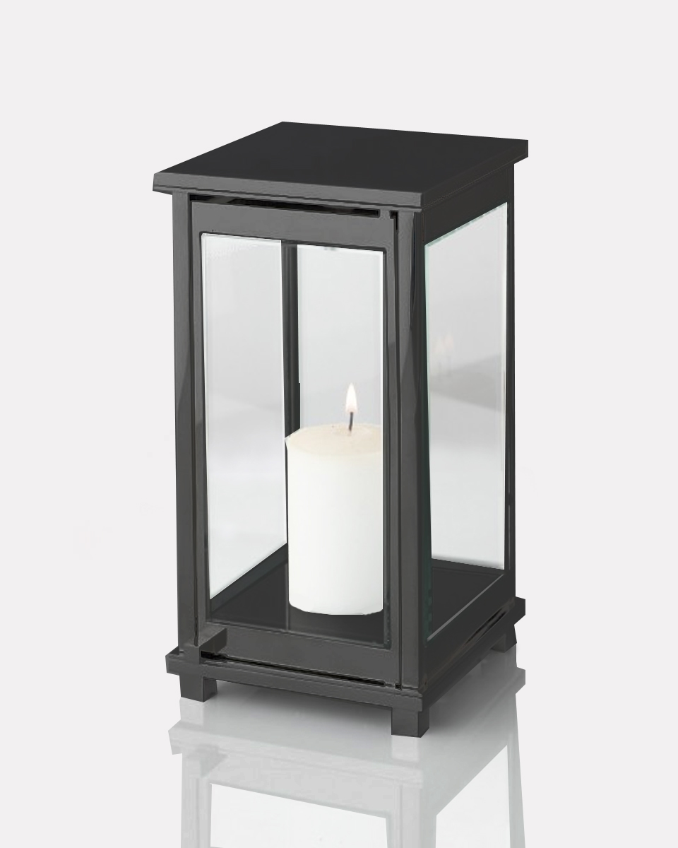 Minimalistyczny lampion wykonany ze szkła i stali nierdzewnej, zaprojektowany z myślą o nowoczesnych nagrobkach. Prosta forma i czarna kolorystyka sprawiają, że harmonijnie wpisuje się w nagrobek z elementami czarnego kamienia. Przystosowany do świecy LED, pozwala zachować estetyczny wygląd bez ryzyka okopcenia.