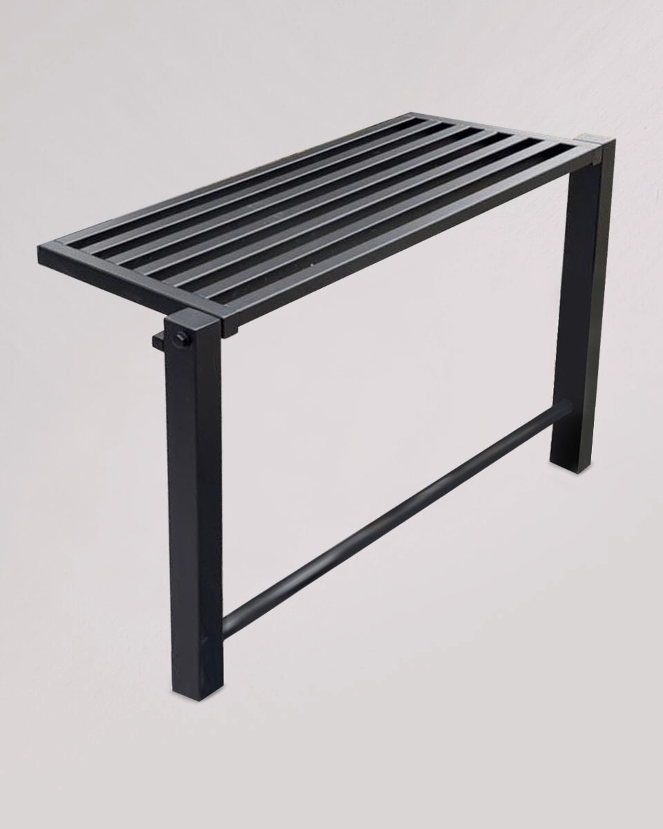 Minimalistyczna, składana ławka cmentarna wykonana z certyfikowanej stali nierdzewnej malowanej proszkowo na czarno, zaprojektowana z myślą o nowoczesnych przestrzeniach cmentarnych. Składane siedzisko pozwala zachować porządek i dyskretną formę, zajmując minimalną ilość miejsca. Przeznaczona do trwałego montażu poprzez zabetonowanie, zapewnia stabilność oraz spójny, estetyczny wygląd całości.