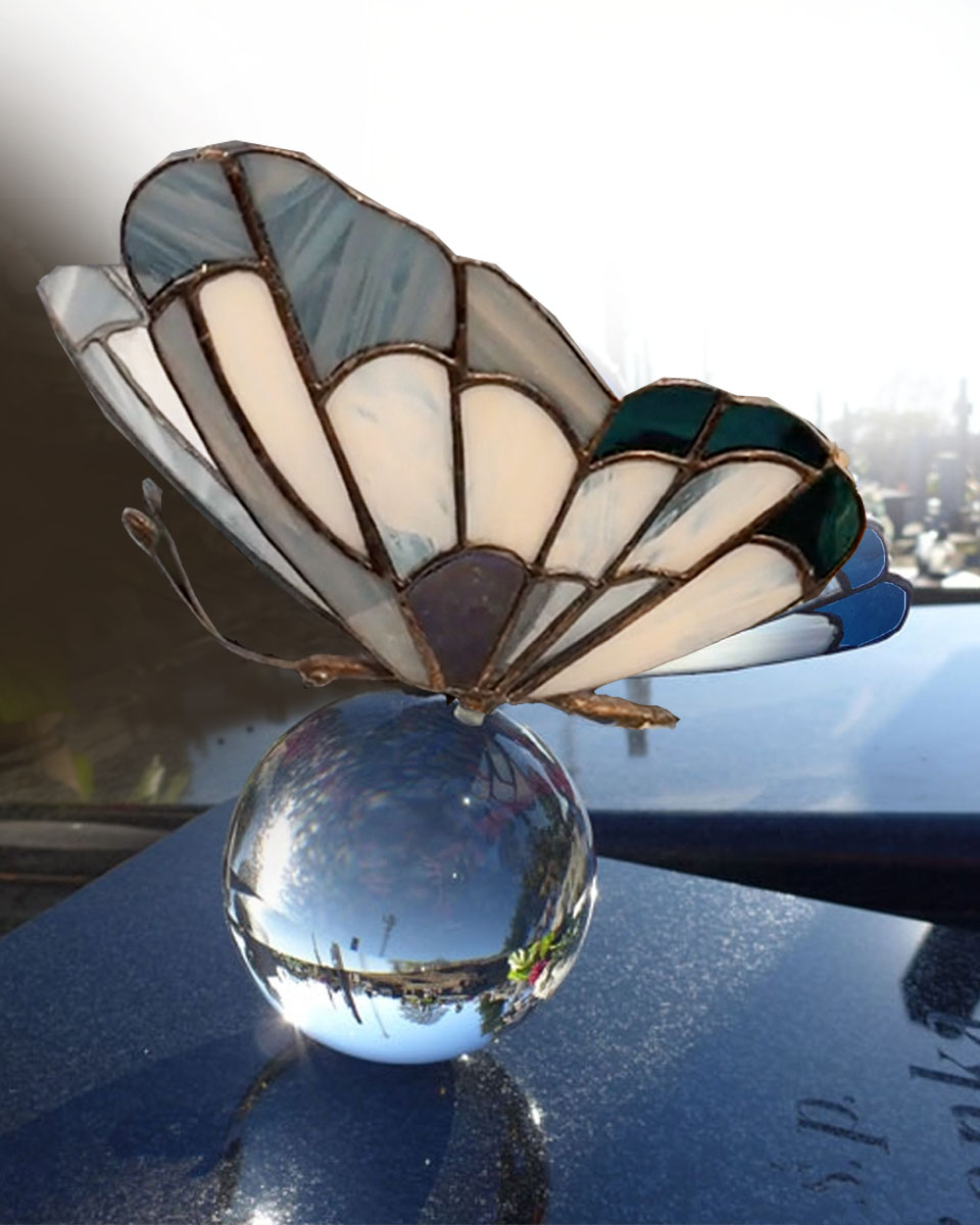 Materiał: barwione szkło witrażowe, technika Tiffany, kula kryształowa